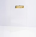 Mantenha seus documentos organizados com estilo e elegância usando a Prancheta Clear Gold. Projetada para folhas A4, esta peça combina a transparência do acrílico com detalhes sofisticados em metal, proporcionando um design moderno e funcional para seu escritório, home office ou ambiente de estudo.